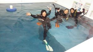 三姉妹のような仲良しダイバーの皆さんが、レスキュー練習に萌えて…